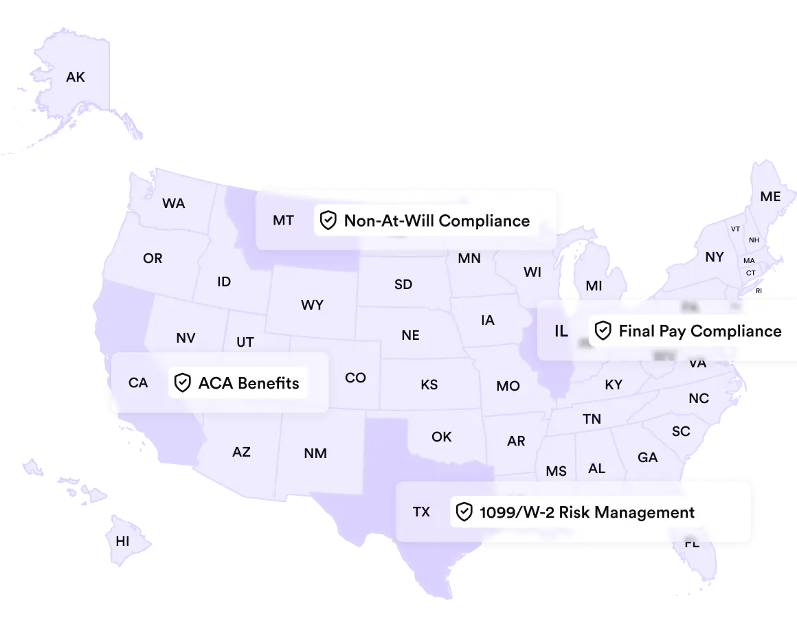 We use a comprehensive classification engine to evaluate W-2 vs. 1099 status, backed by our internal legal expertise and clear indemnification structures.